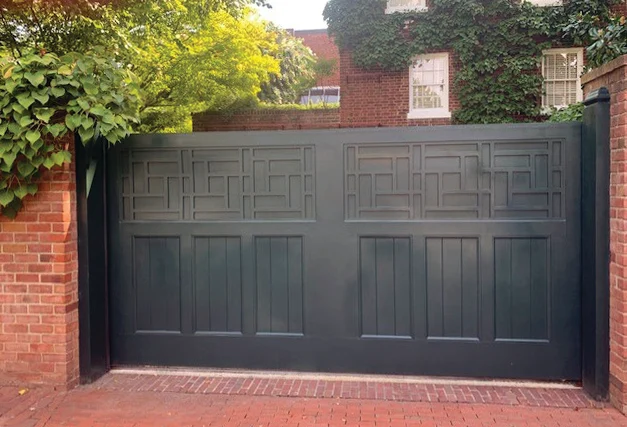 Custom Board Panel Gate with Brick Posts