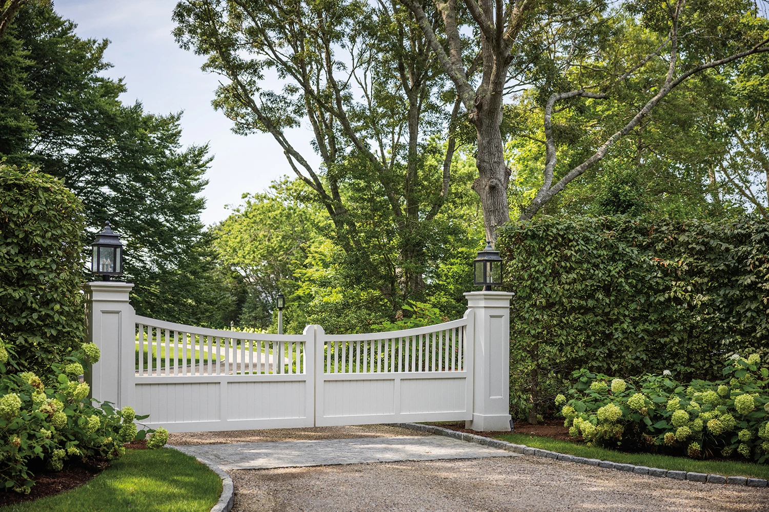 Paneled Bottom Drive Gate with Scallop Capped Picket Top