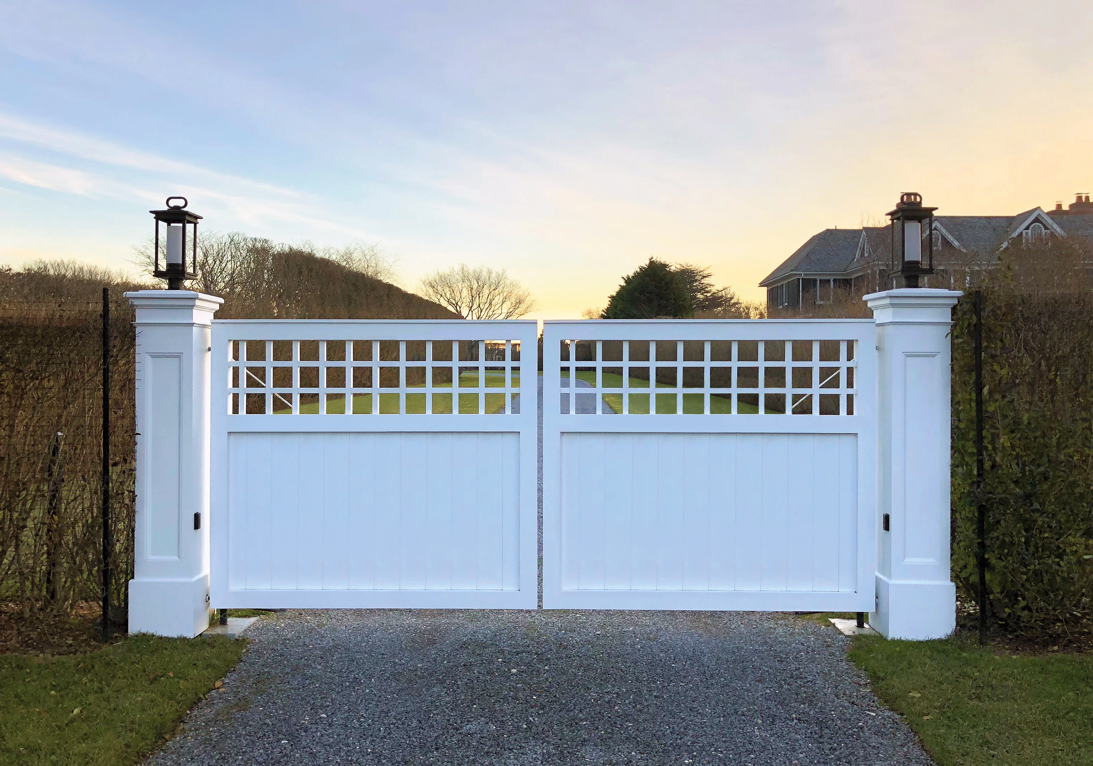 Universal Board Drive Gate with Lattice Topper and Lantern Posts