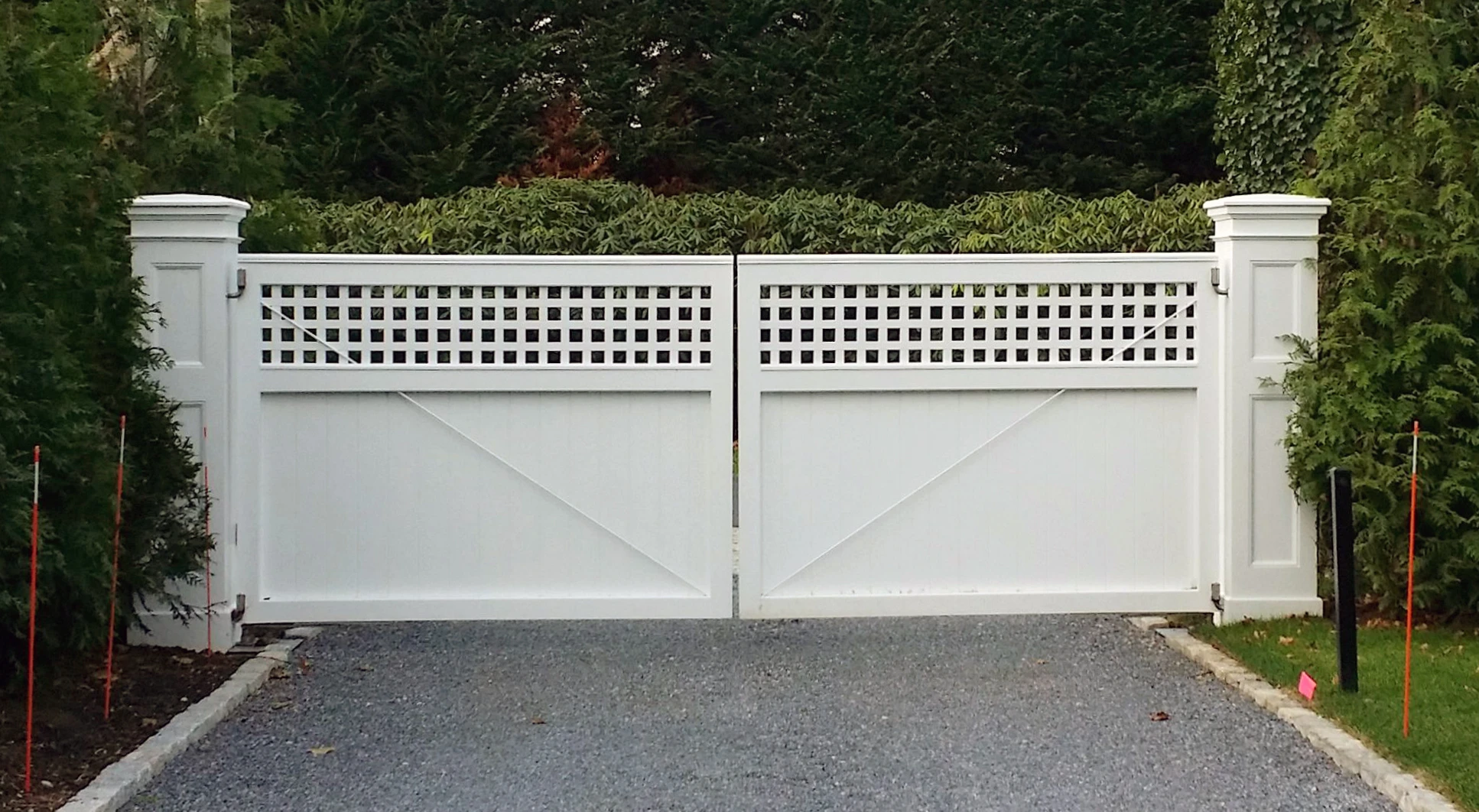 Universal Board Driveway Gate with Lattice Topper and Bostonian Posts