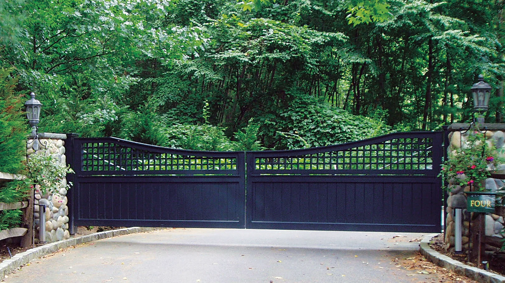 Wide Double Entrance Gate with Lattice Topper