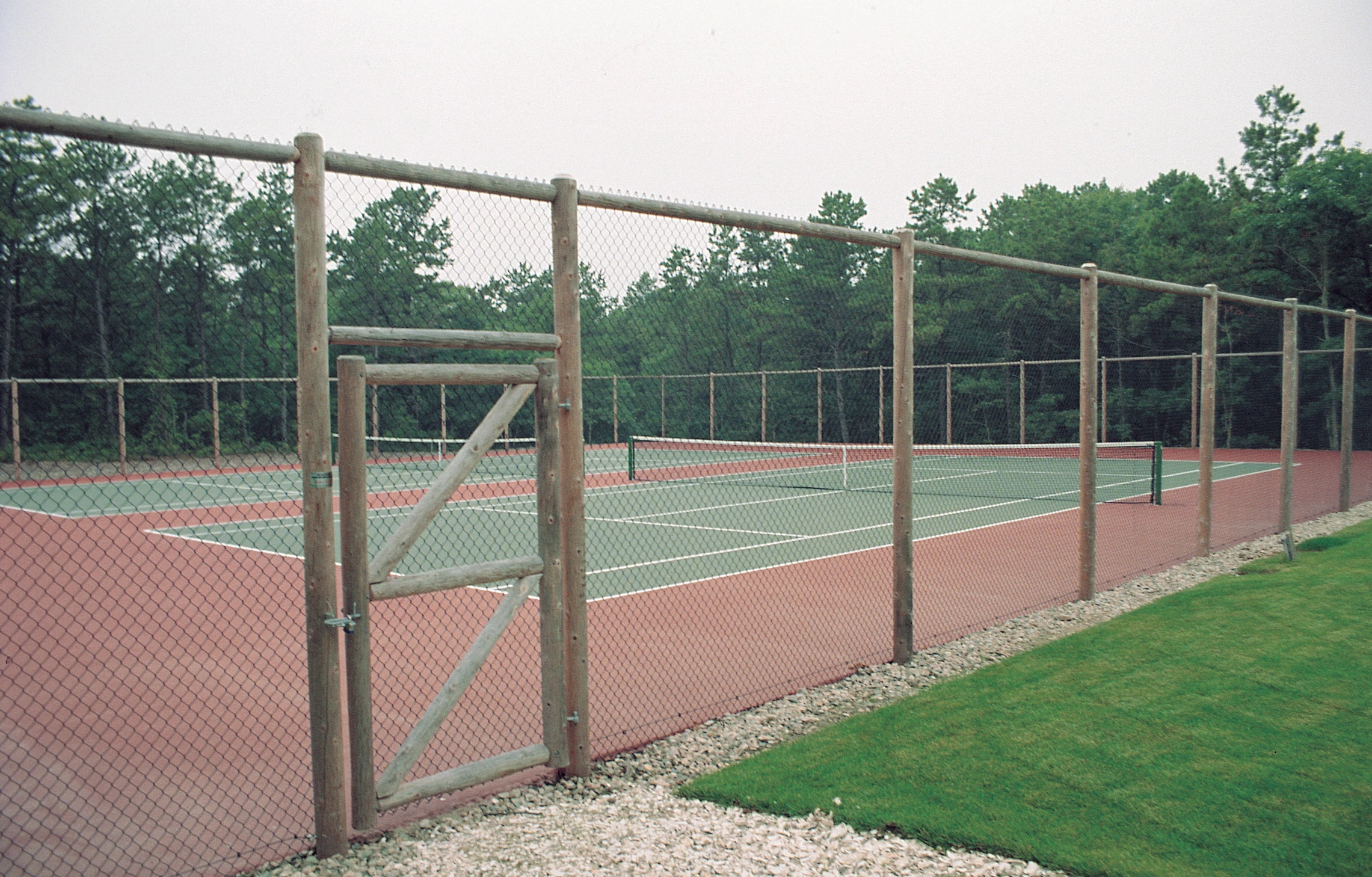 Cedar Posts and Chainlink Tennis Court Enclosure