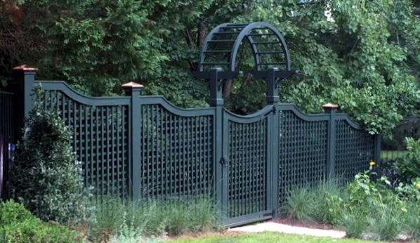Verde Green Lattice Fence with Copper Post Caps