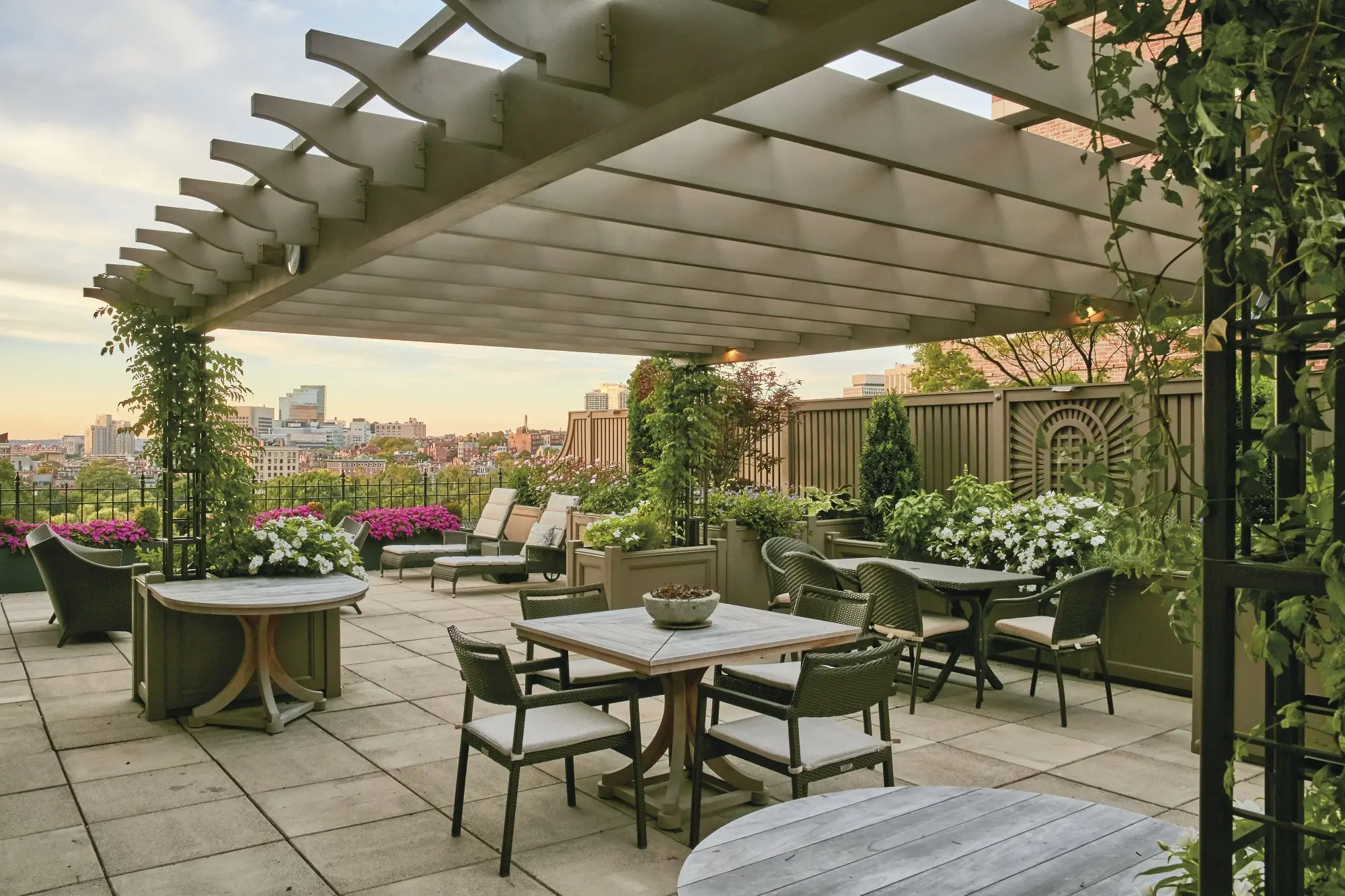 The inlaid panels on these specially weighted planter boxes artfully match the styling of the pergola columns to which they are attached. Walpole planter boxes crafted in low maintenance solid cellular vinyl do not require liners.