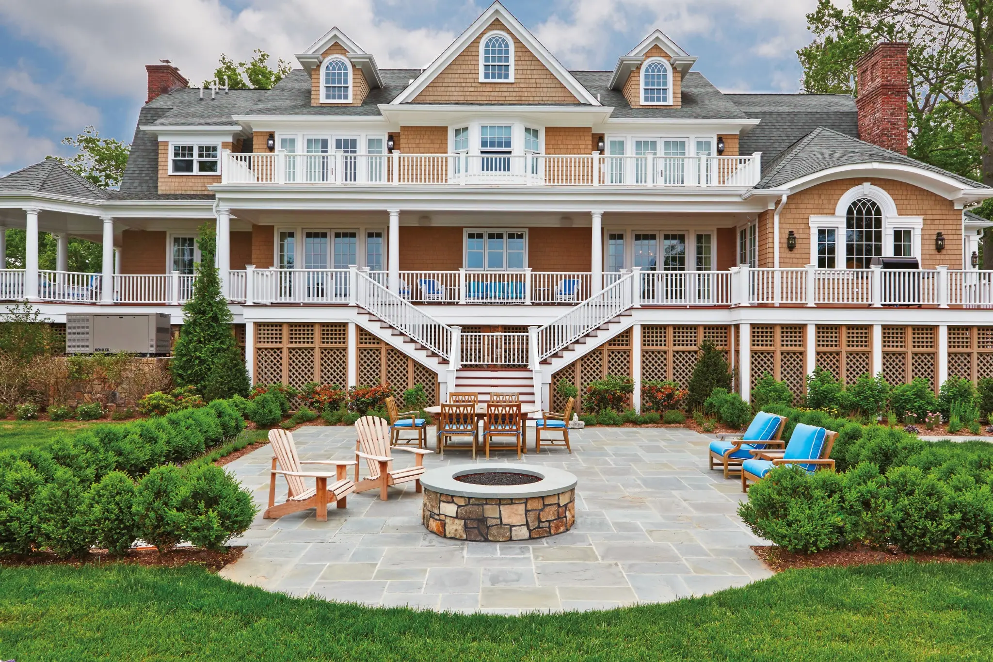 This custom railing is a superb example of how expertly Walpole can meet your needs for stairways and porches. The Pendleton is a classic style that blends graciously with the architecture of many homes, from traditional to new construction. On the balcony above are Chippendale panels, adding even more sophistication and charm to the overall look.