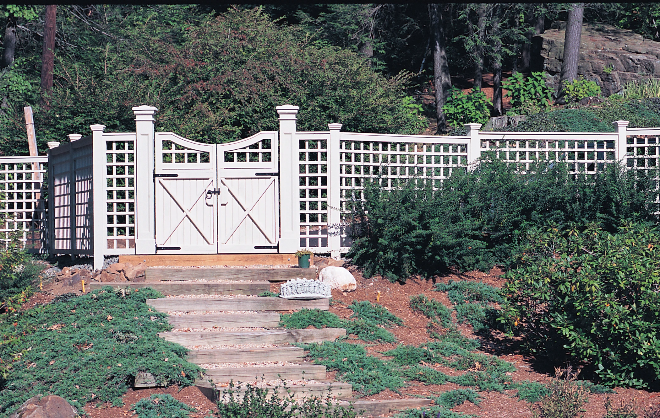 Double Board Gate with Custom Scalloped Lattice Topper