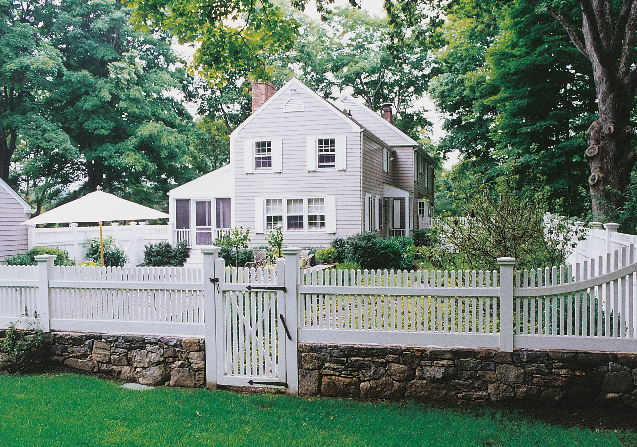 Single Chestnut Hill Gate and Fence on Stone Wall