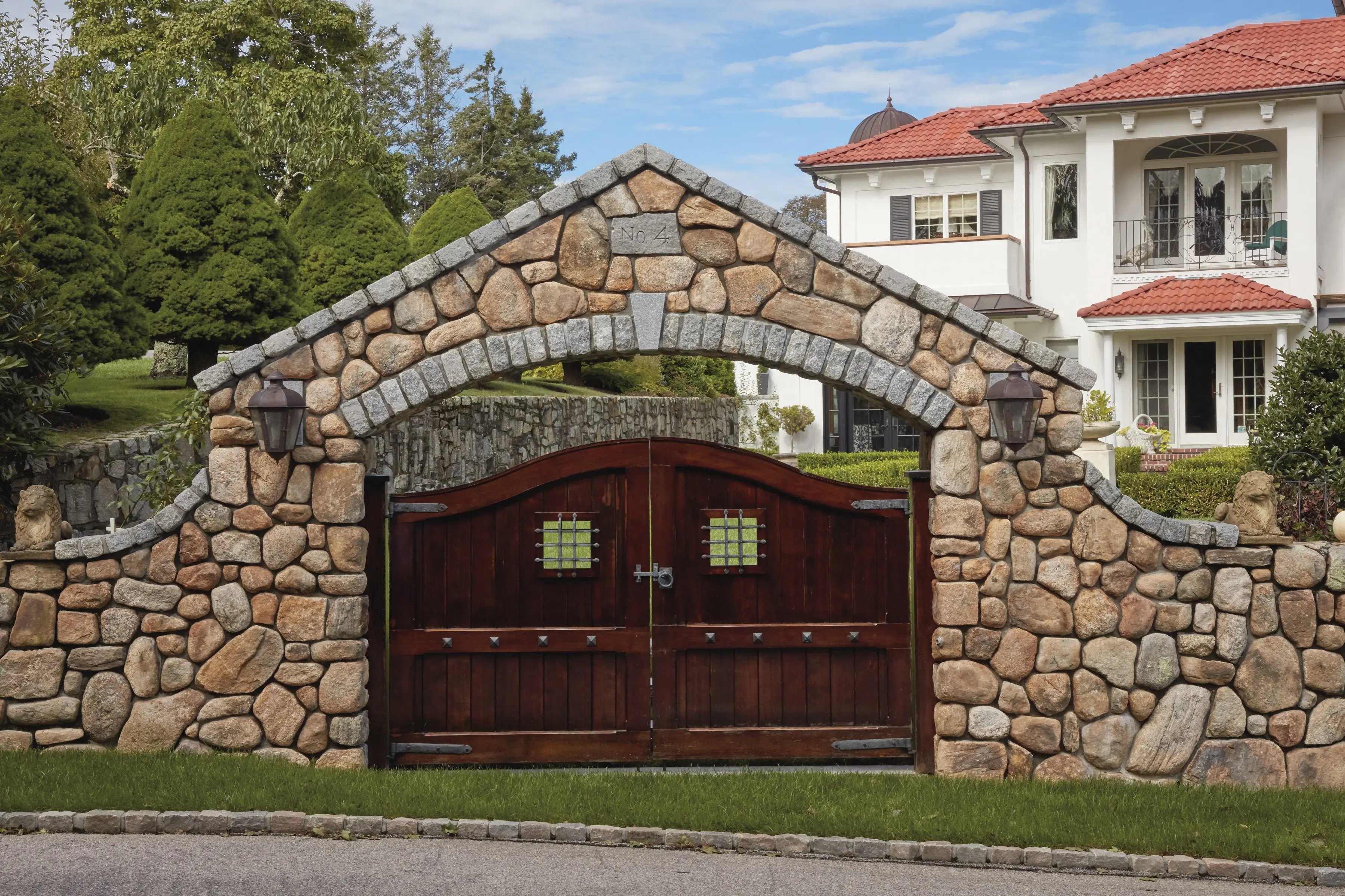 Wooden Board Gate Set in Stone Arch