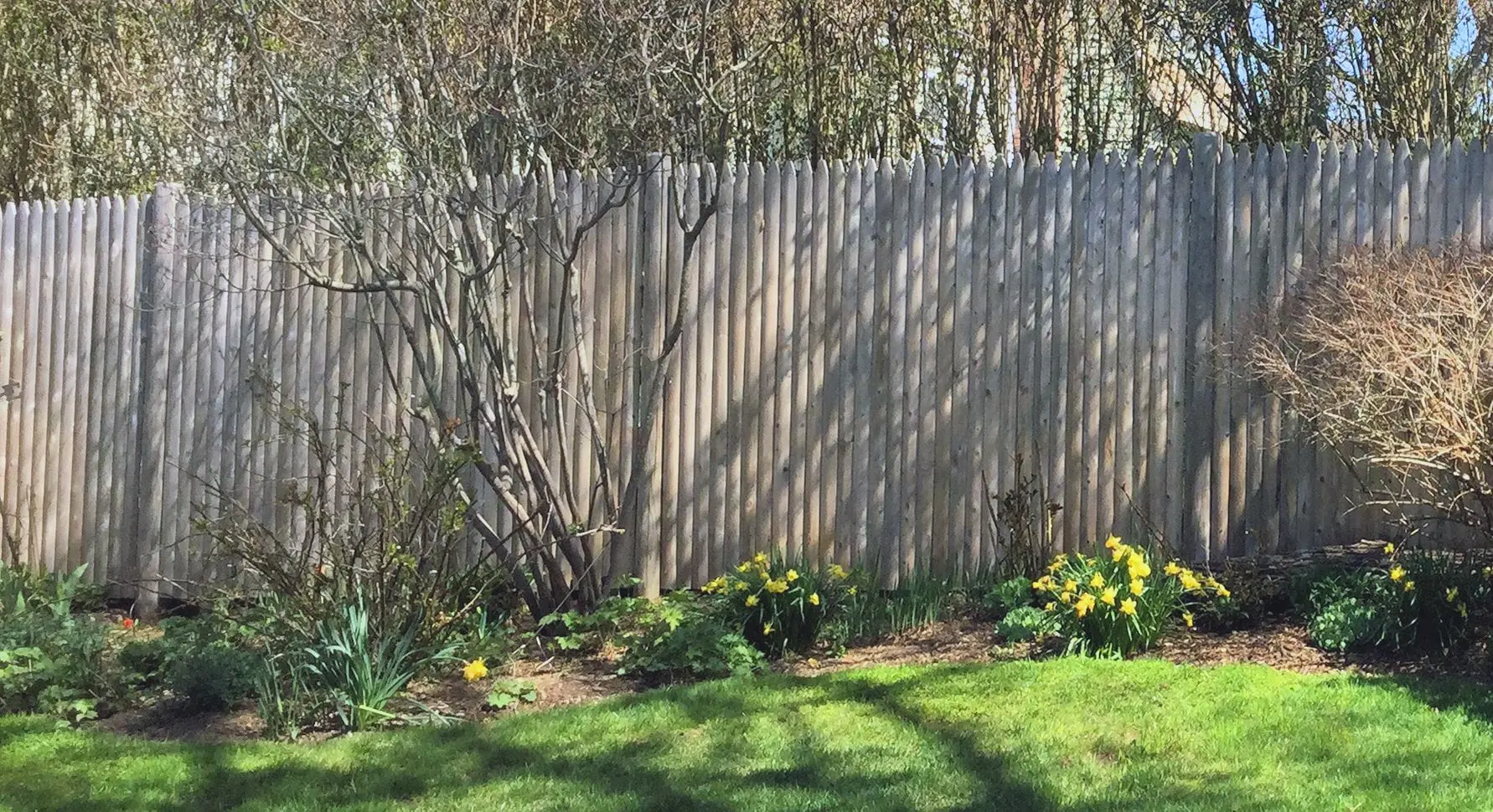 A Walpole classic, this traditional screen fence can easily be tailored to your landscaping. Stockade Style Screen with 80% Round Backing Rail. 5'' diameter posts. 4'H to 8'H.