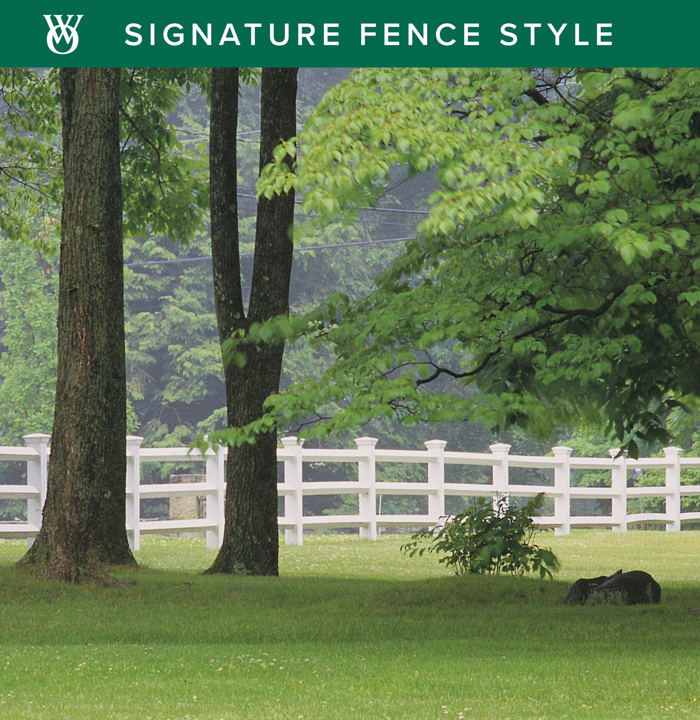 A sturdy, orderly fence that defines a landscape or driveway with authority. 3½'' square rail with 5½'' square posts. 2½'H with two rails. 3½'H or 4'H with three rails.