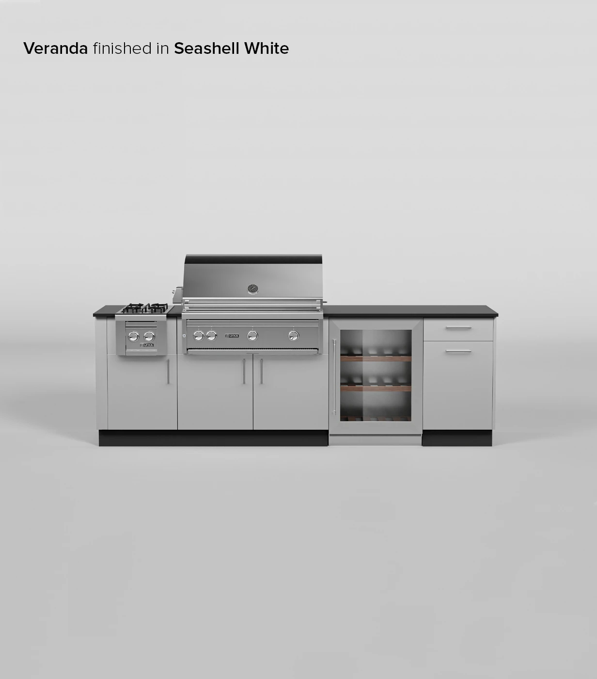 For a simplified design process, we offer seven predetermined kitchen layouts that bring together our most functional and versatile cabinet configurations with six designer-curated powder coat finishes. Our stainless steel cabinets are designed to combine long-lasting functionality with style. Weather-resistant stainless steel lends itself well to perennial all-season use. All doors and drawers are fitted with weather-resistant gaskets.